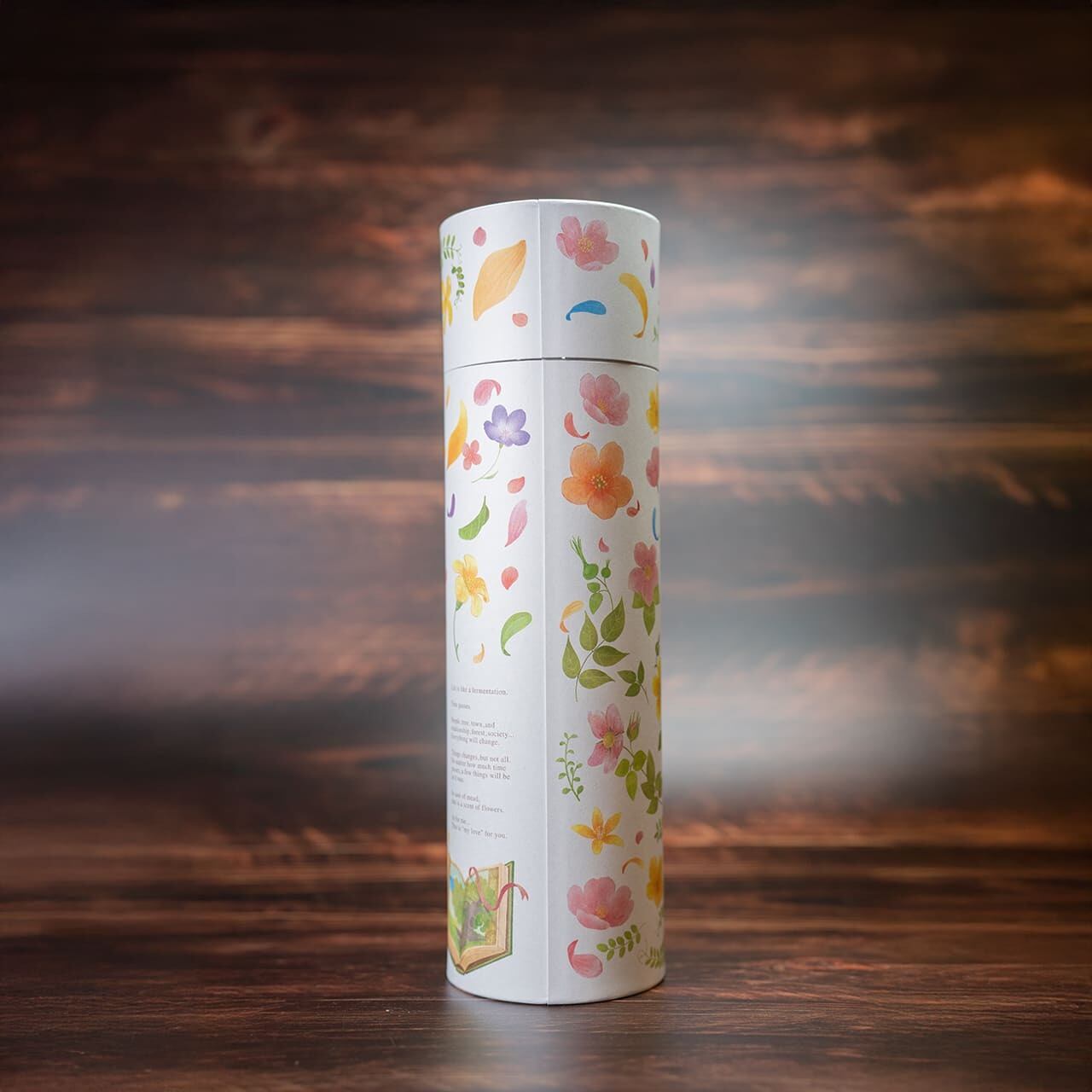 贈られた人に、笑顔のひとときが届きますように。そんな想いを込めて、色とりどりの花が、ふわっと舞い上がる、オリジナルの紙筒をつくりました。花束を贈るように、大切な人へのプレゼントにお選びいただけたら、とっても嬉しいです。