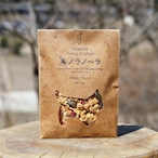 6種類の有機ナッツ(アーモンド、カシューナッツ、マカダミアナッツ、クルミ、ピーカンナッツ、パンプキンシード)と、3種類の有機ドライフルーツ(ドライパイン、ドライクランベリー、ドライレーズン)がゴロゴロ入っています。グラノーラは、蜂蜜とココナッツの香りが調和するフレーバーです。