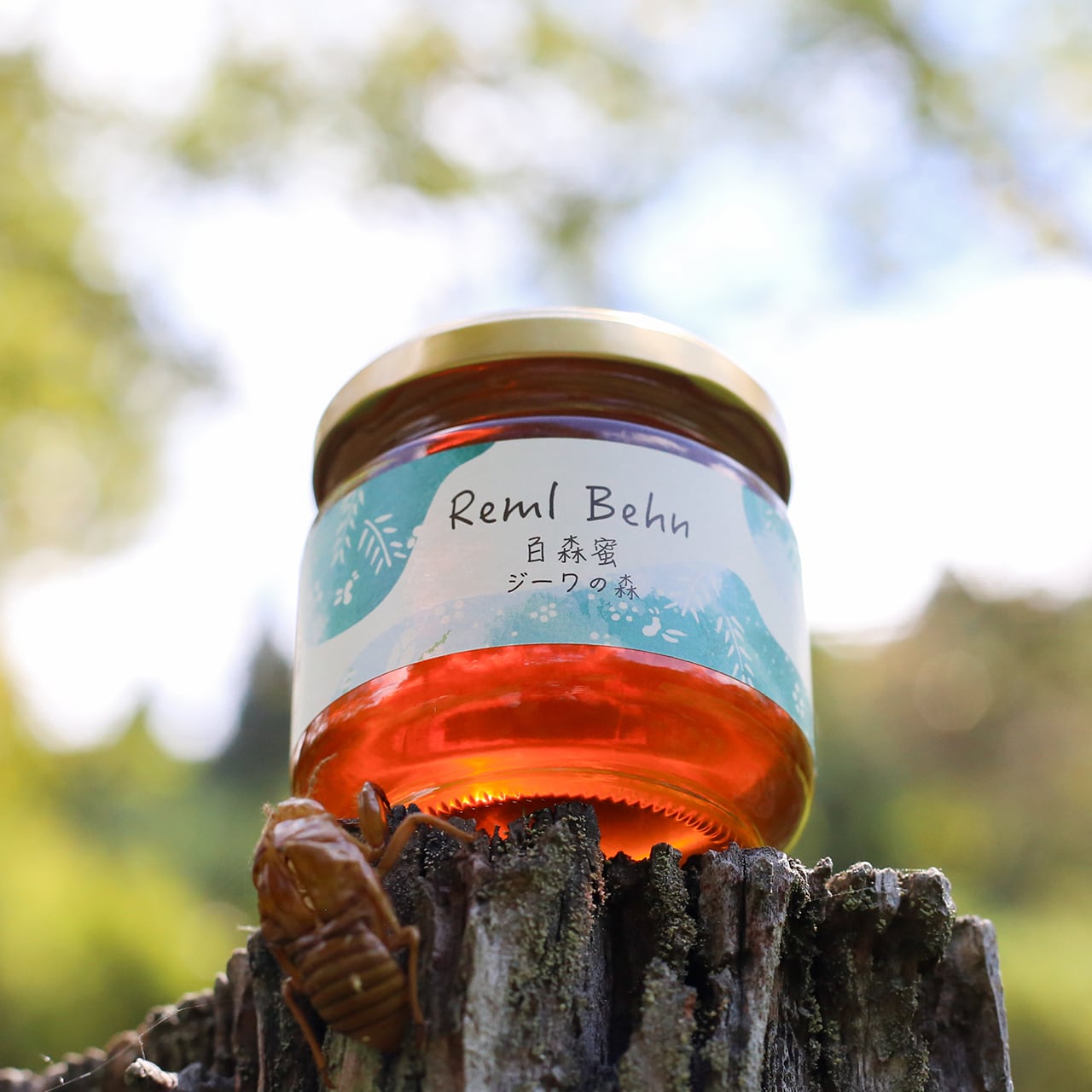 「ジーワ、ジーワ」とセミの大合唱が響く夏本番。8月に森で採れた百森蜜です。全国的にも希少なカラスザンショウを中心とした蜂蜜。柑橘系の爽やかな香りに黒糖のようなコクを持ち、人気の高い一品です。